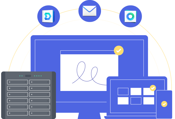 Umożliwiaj zespołom wspólną pracę, niezależnie od lokalizacji, dzięki lokalnemu pakietowi narzędzi do współpracy, w tym prywatnemu serwerowi poczty, komunikatorowi i pakietowi biurowemu online do jednoczesnej edycji dokumentów, arkuszy kalkulacyjnych i slajdów.